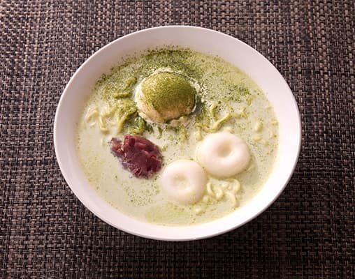 ・抹茶のほろ苦さとアイスの甘さが調和し、和の香りが漂う新感覚ラーメンです。