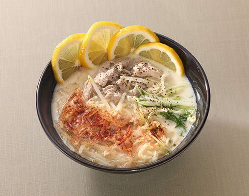 ・上の3つの食材で、疲労回復・免疫ケア・食欲増進を同時にサポートし、豆乳で酸味をまろやかに整えた。体に優しいラーメンです。